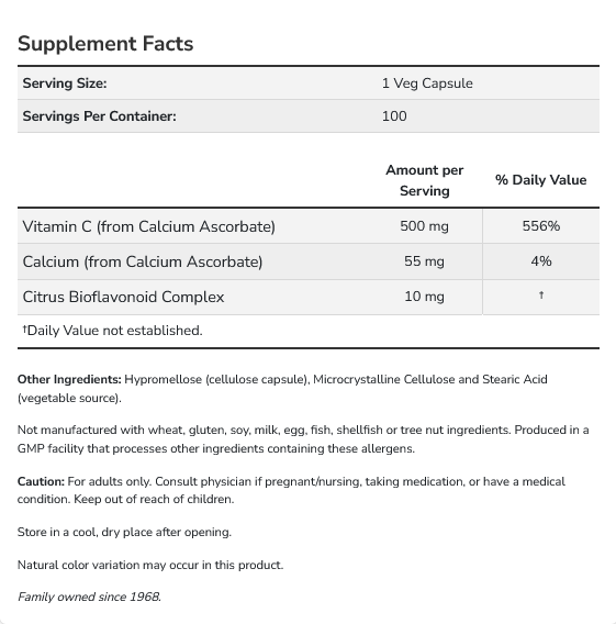 C-500 Calcium Ascorbate-C 250 Veg Capsules
